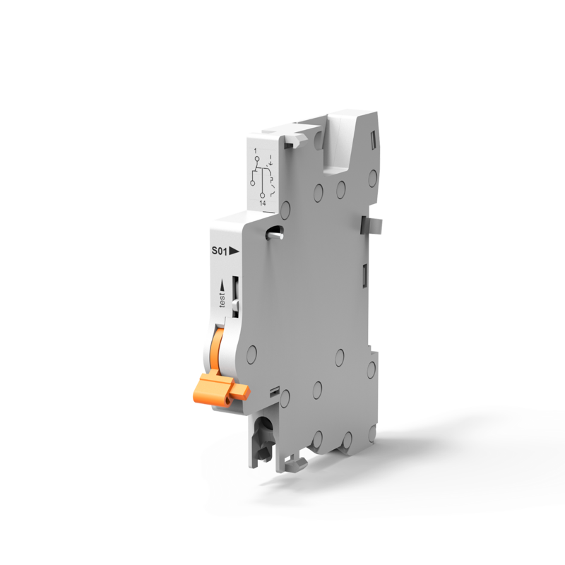 The X4230-S auxiliary switch has a change-over contact as signal contact and is actuated via the circuit breaker. Unlike the X4230-A, there is no differentiation between manual or electrical switch-off.
