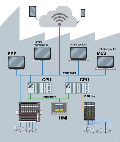 ControlPlex®® DINrail systems with the CPC20PN bus controllers and the intelligent EM12D-T supply modules optimally meet these requirements. The bus controllers with their interfaces offer the perfect connection to the superordinate systems. The PROFINET or IO link interface connects the power distribution systems with the field level and thus with the connected CPUs and HMIs.